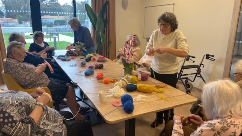 Nos résidentes ont eu le plaisir d'accueillir, comme chaque mois, l'association Royan Couture Coeur. Elles ont participé avec enthousiasme à l'atelier, en tricotant et en réalisant de jolis pompons.