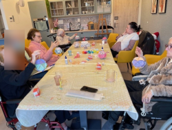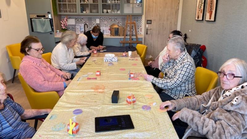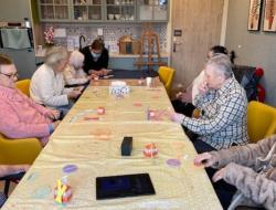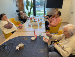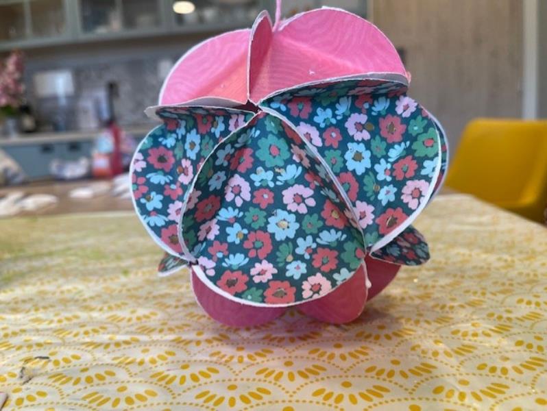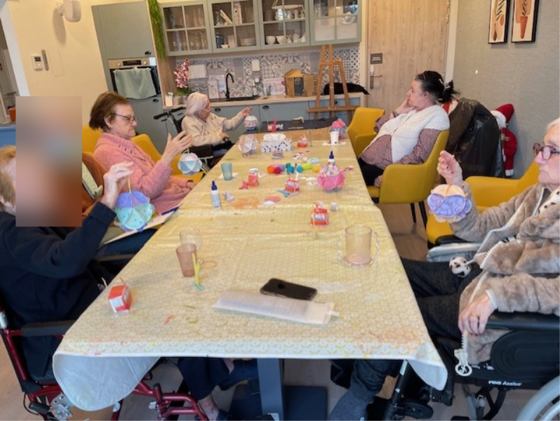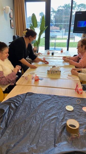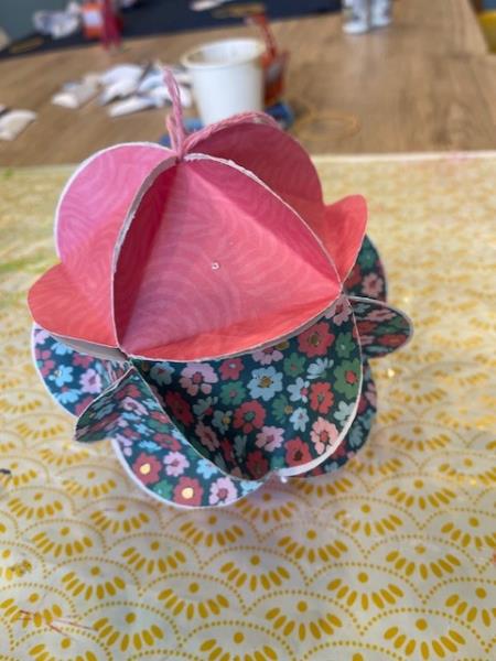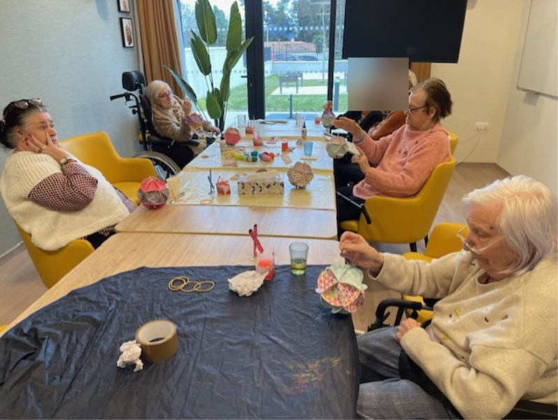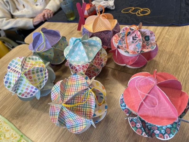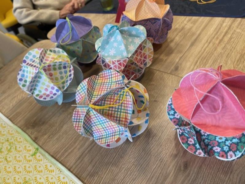 Nous avons reçu Christine, de l'association Mémoires Vives, qui a initié les résidents à la fabrication de lampion en papier.
