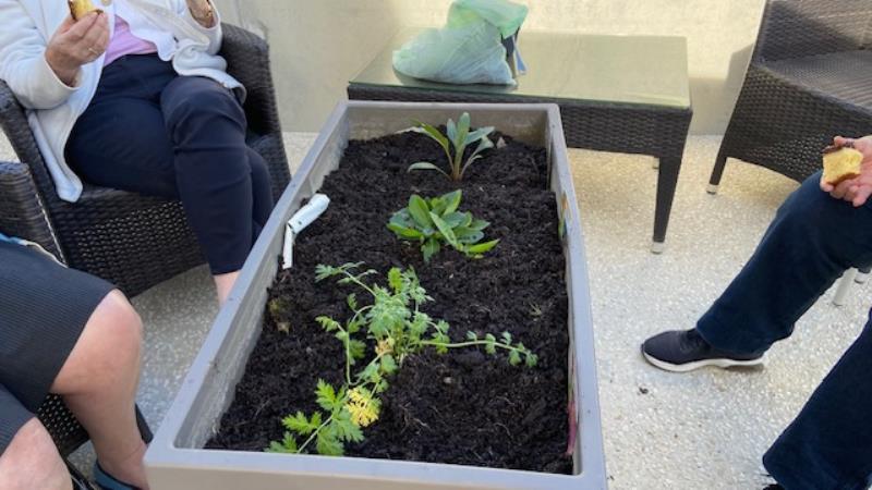 Les résidents ont pu participer activement en manipulant la terre et en réalisant des plantations de fleurs. Cette activité a suscité de l’intérêt et une bonne implication de leur part.