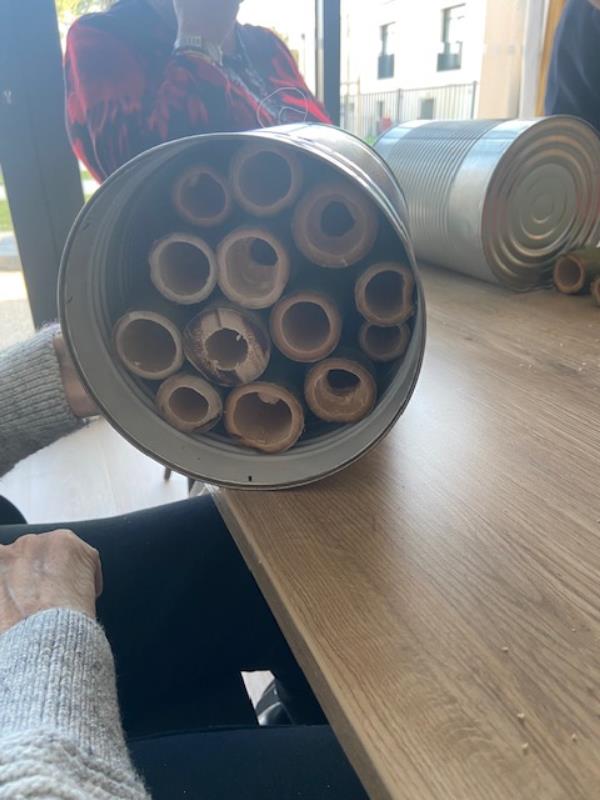 Aujourd'hui, les résidents ont participé à un atelier original et porteur de sens: la fabrication de boîtes à insectes. Cette animation, à la fois manuelle, écologique et convivial, a rencontré un vif succès.