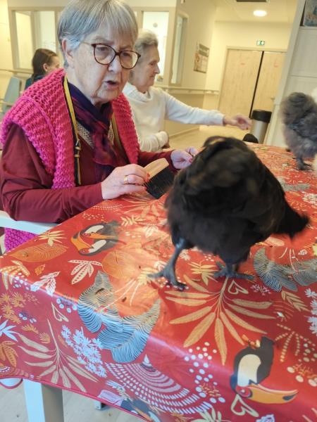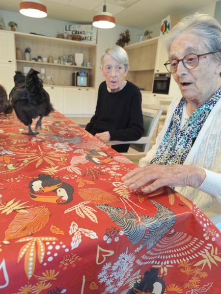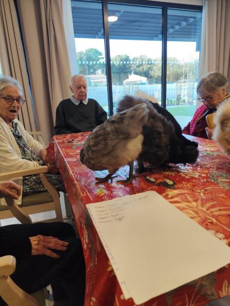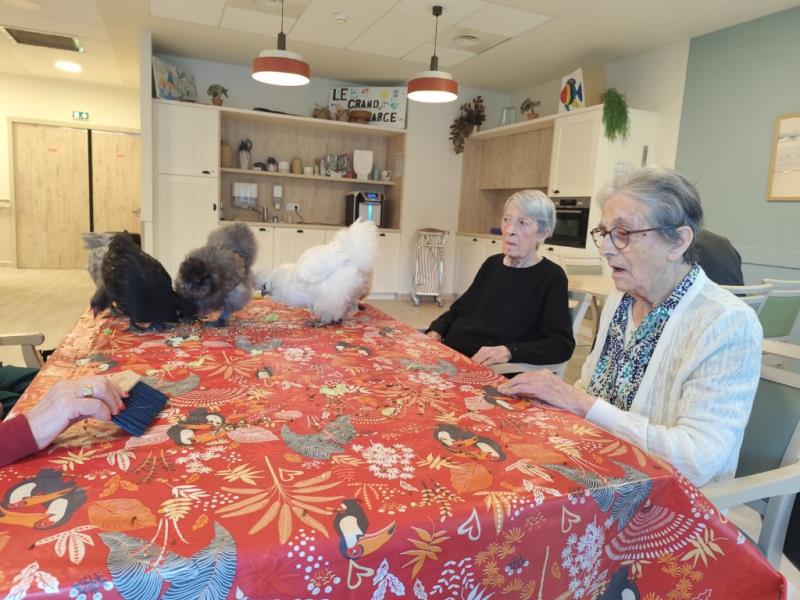 Résidence des Grands Chênes > Actualités > Médiation Animal Médiation Animal Publiée le 18/12/2025 Aujourd'hui 18/12/25 a l'UP nous avons accueillit des Poules