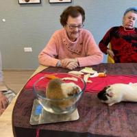 Publiée le 28/01/2026Les résidents ont passé un moment de douceur et de convivialité lors d'une séance de médiation animale. A cette occasion des cochons d'Inde et des lapins sont venus à leur rencontre pour le plus grand plaisir de tous. Ils ont pu donner à manger aux animaux , les observer et les caresser. Cette activ [...] Lire la suite