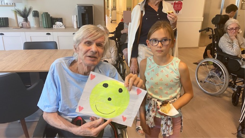 Petit bonus pour l'anniversaire de l'une de nos résidente. Les enfants sont arrivés avec des dessins et lui ont chanté " Joyeux Anniversaire".