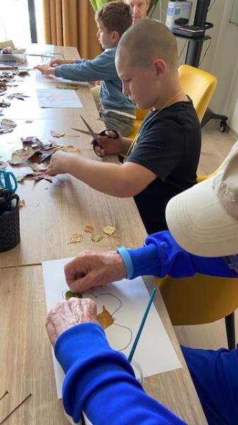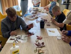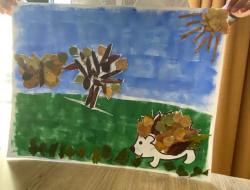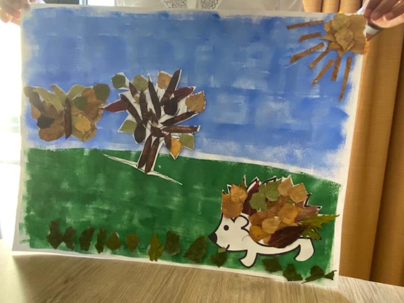 Autour du thème de l'automne, chaque petit groupe a pu laisser libre cours àlson imagination: collage de feuilles séchées, découpage et coloriage ont permis de réaliser une œuvre.