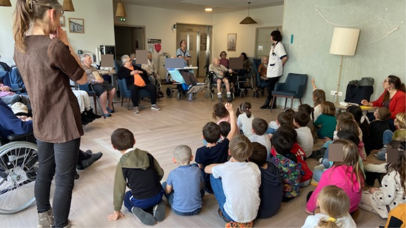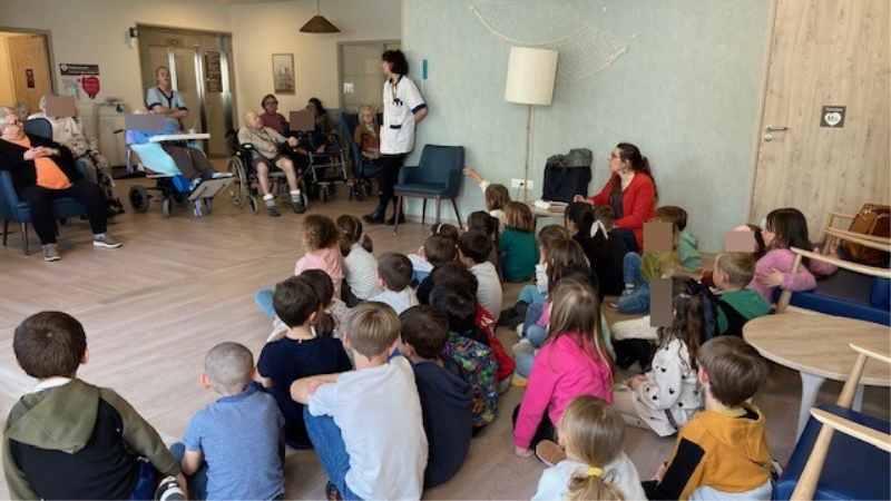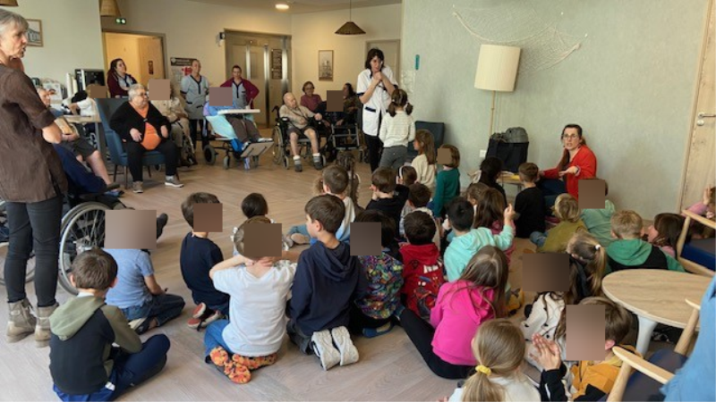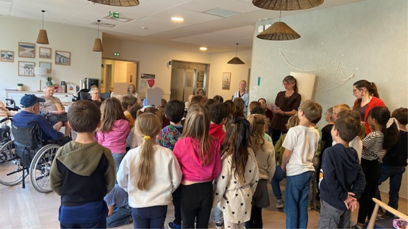 Les enfants de l’École Primaire de Meschers sont venus rendre visite aux résidents pour partager un moment chaleureux et intergénérationnel.