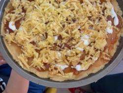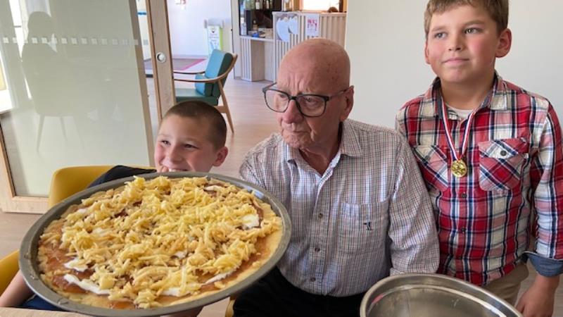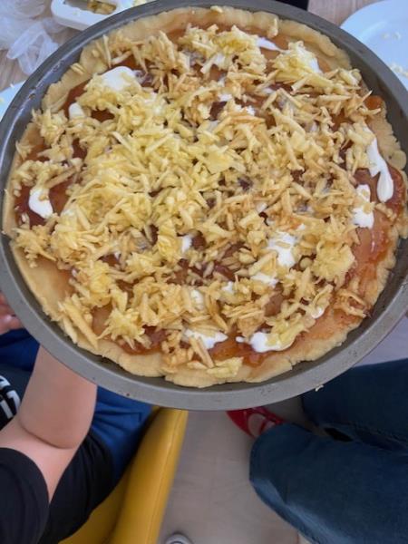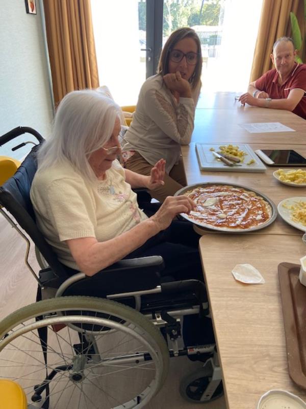Tout le monde a retroussé ses manches pour cuisiner une pizza trompe l'oeil.