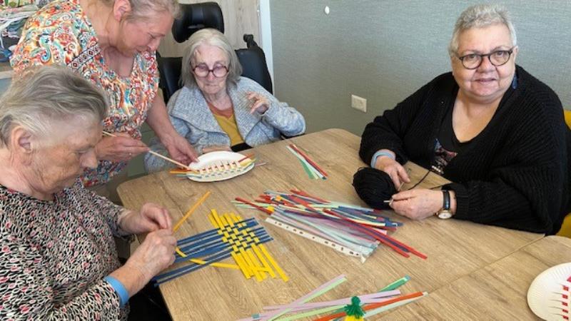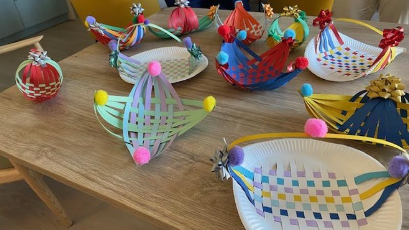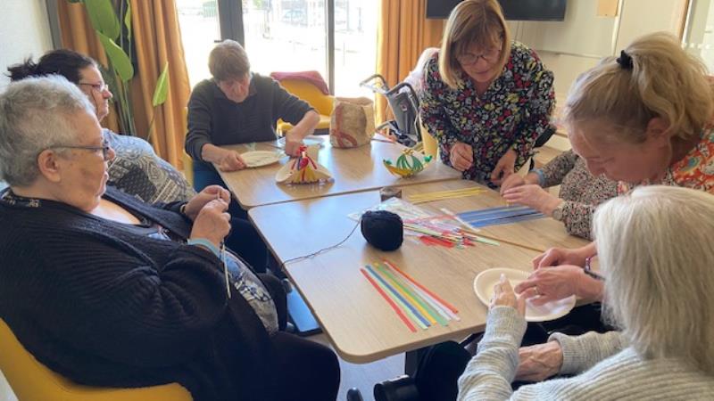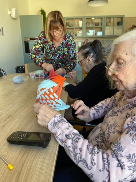 Chacune a pu participer à des activités de tricot et de tissage, favorisant les échanges et la créativité, avec la réalisation de paniers pour Pâques.
