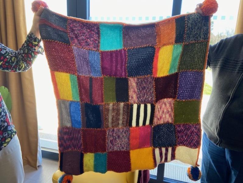 Ce beau temps collectif a également permis la création et l'assemblage d'une grande couverture en patchwork, symbole de travail commun.