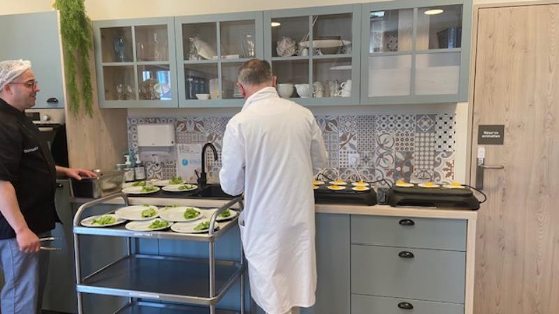 La venue de Laurent Hirigoyen, responsable restauration régional chez DomusVi a été l'occasion d'organiser une belle "Table d'hôtes" autour d'un aliment particulièrement apprécié des résidents: L'œuf sur le plat.
